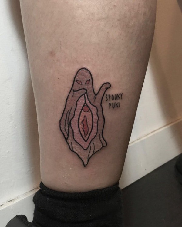 幽灵纹身图案 男生小腿上黑灰的幽灵纹身图片