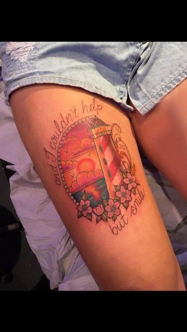 建筑物纹身 女生大腿上彩色的建筑物纹身图片