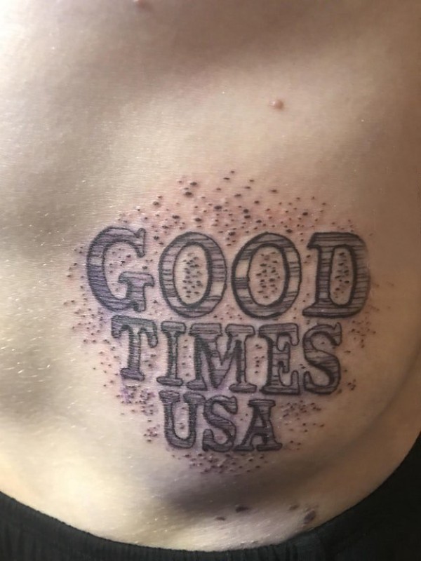 英文字母纹身男 男生腹部黑灰的英文字母纹身图片