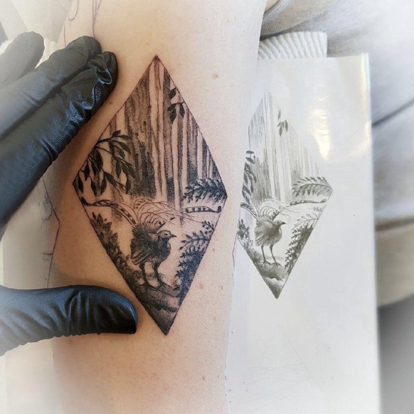 方框小黑纹身图--几何图形方框里的小黑色纹身图案