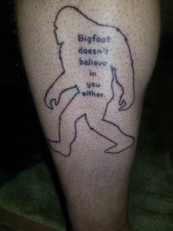 极简线条纹身 男生小腿上英文和人物轮廓纹身图片