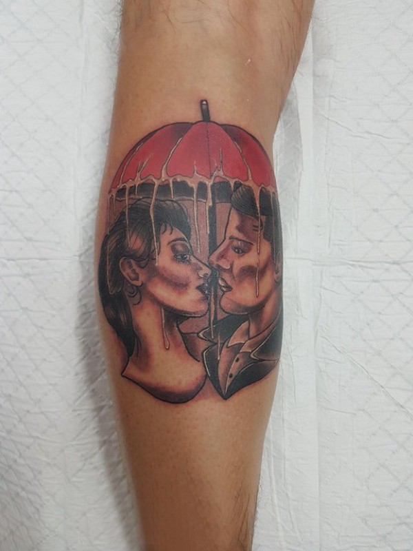 创意情侣纹身 男生手臂上彩色的情侣纹身图片