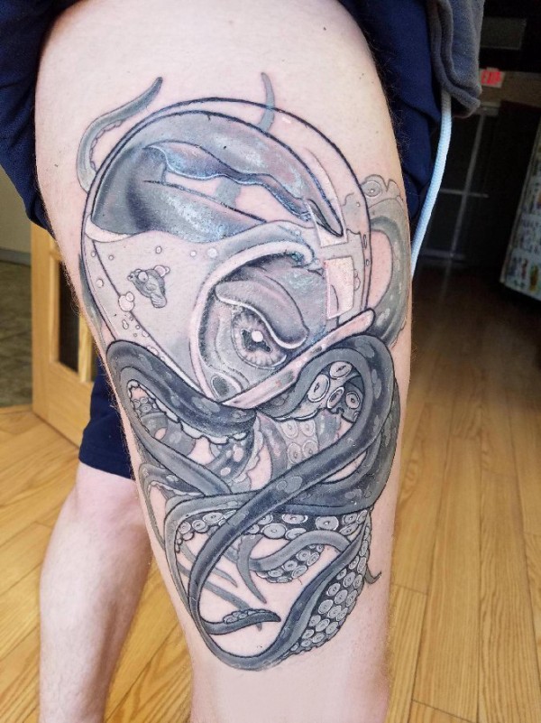 宇航员纹身图案 女生大腿上宇航员纹身图案