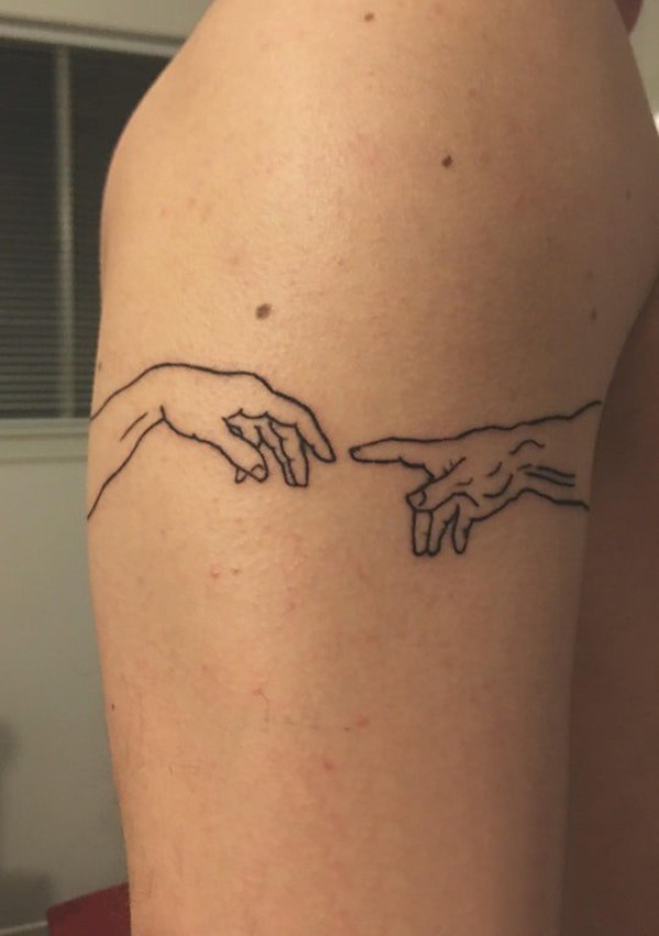 极简线条纹身 男生大臂上黑色的手部纹身图片
