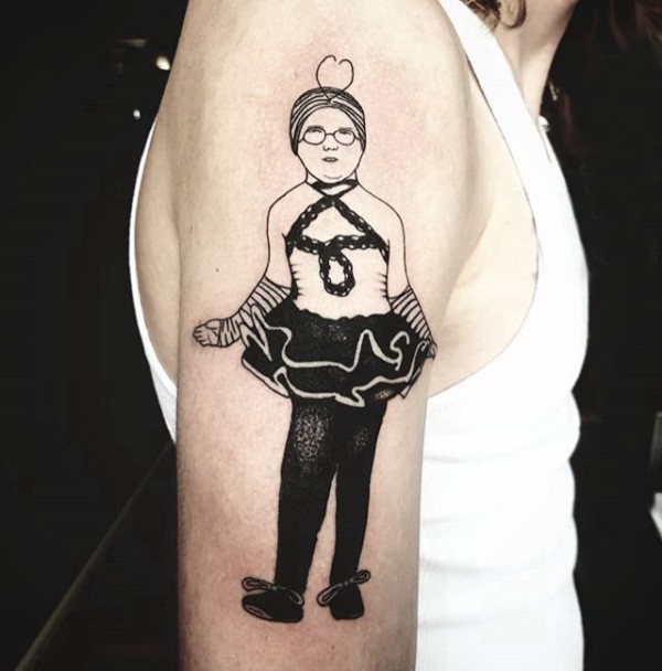 极简线条纹身 男生大臂上黑色的人物纹身图片