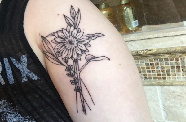 草图感向日葵纹身图案_植物纹身图案大全_纹身图吧