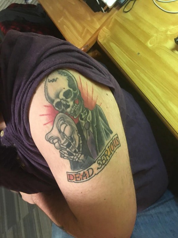 大臂纹身图 男生大臂上面具和骷髅纹身图片