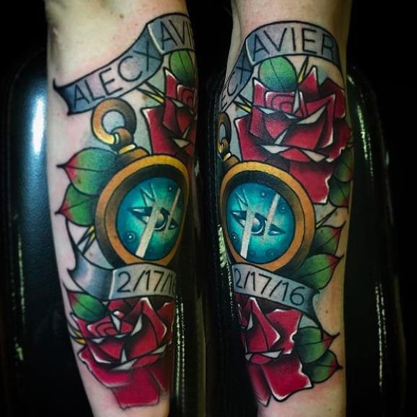 欧美玫瑰纹身 男生手臂上花朵纹身图片