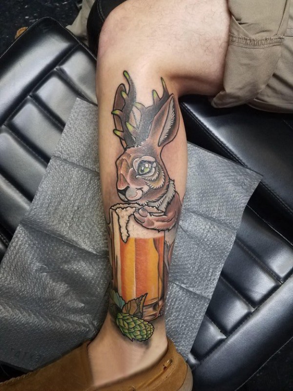 麋鹿纹身图案男 男生小腿上彩绘麋鹿纹身图片