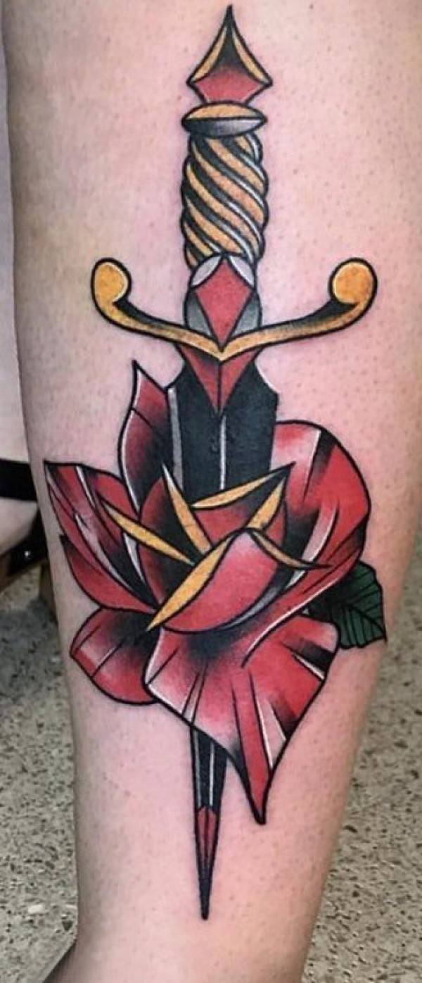 欧美匕首纹身 男生小腿上欧美匕首纹身图片