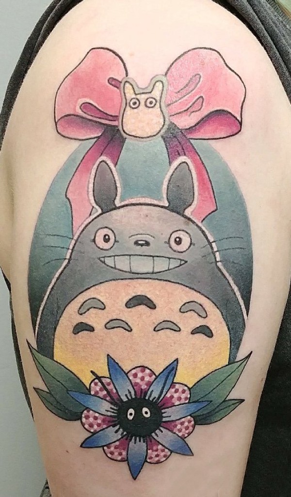 龙猫纹身图案 男生手臂上彩绘龙猫纹身图片
