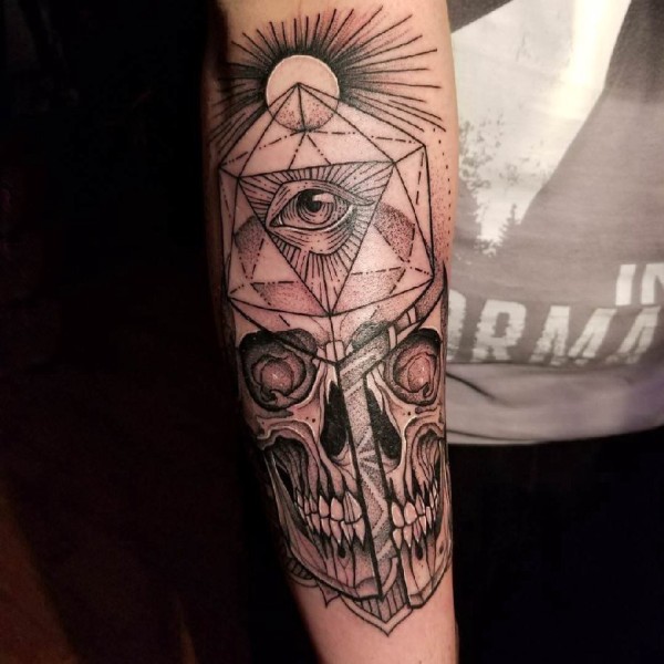 骷髅纹身 男生手臂上骷髅和几何纹身图片