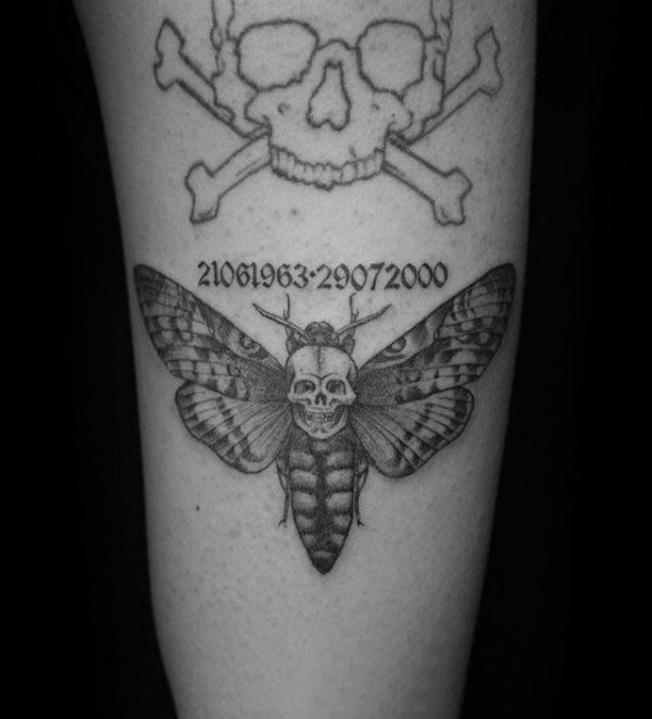 骷髅和蝴蝶纹身图案 女生腿上骷髅和蝴蝶纹身图片