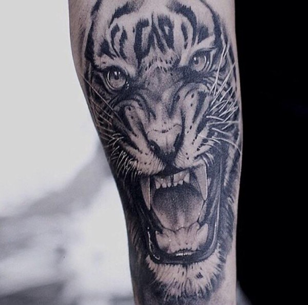 老虎图腾纹身 男生手臂上老虎图腾纹身图片