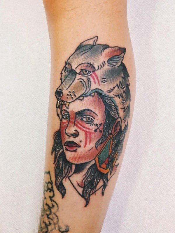 手臂纹身图片 女生手臂上狼头和人物纹身图片