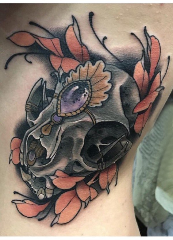 骷髅头纹身 女生侧腰上骷髅头纹身图片