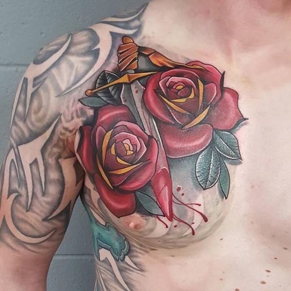欧美玫瑰纹身 男生手臂上花朵纹身图片