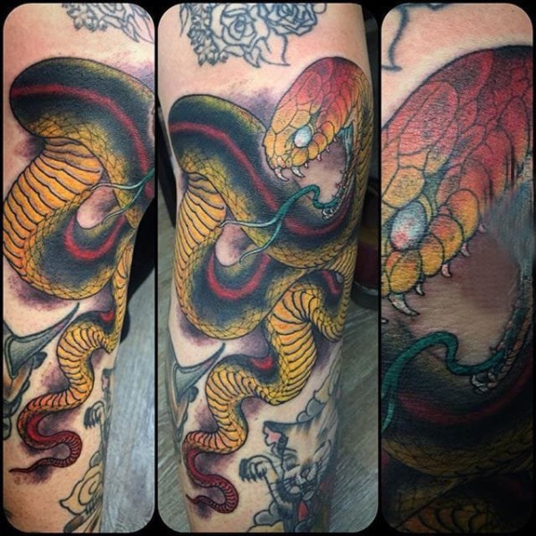 蛇和手臂纹身图案 男生手臂上彩绘的蛇和手臂纹身图片