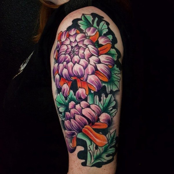 日式菊花纹身 女生手臂上日式菊花纹身图片