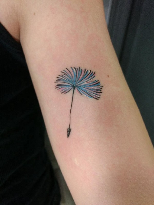 蒲公英纹身 女生手臂上彩色的蒲公英纹身图片