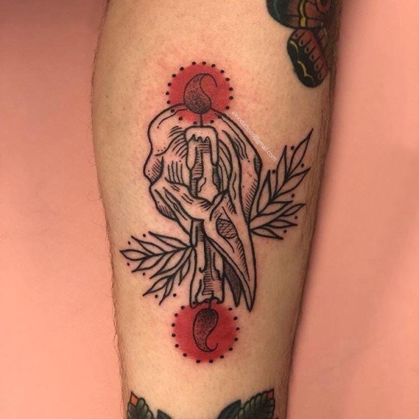 欧美小腿纹身 男生小腿上植物和蜡烛纹身图片