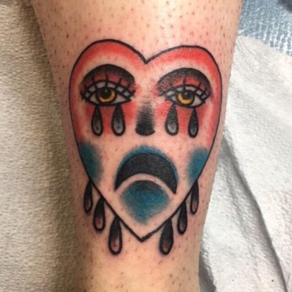 爱心纹身 女生小腿上悲伤的爱心纹身图片