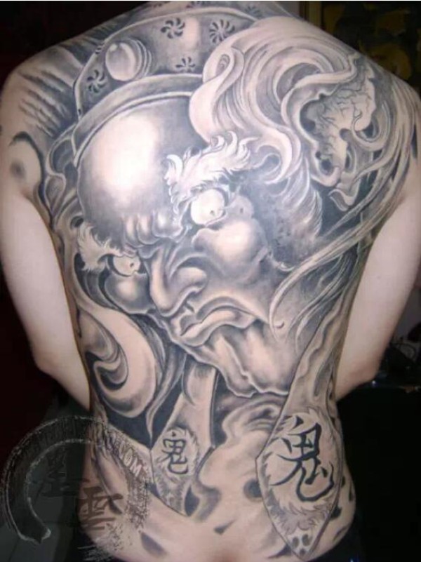 传统个性的抽象线条勾魂使者黑白无常纹身图案