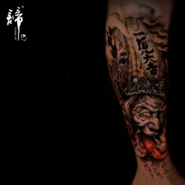 传统个性的抽象线条勾魂使者黑白无常纹身图案