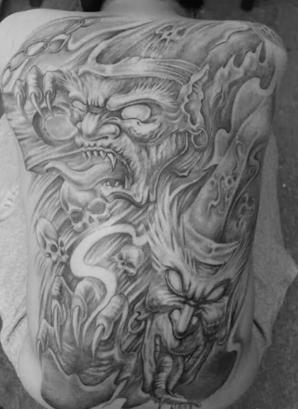 10款大面积黑白灰风格几何元素点刺技巧全身纹身图案