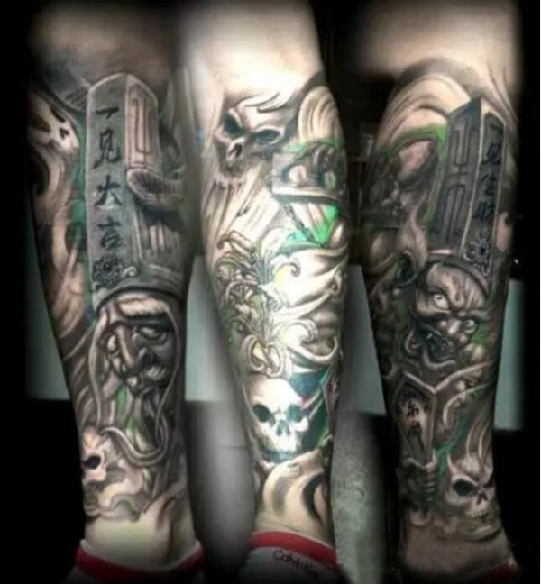 传统个性的抽象线条勾魂使者黑白无常纹身图案