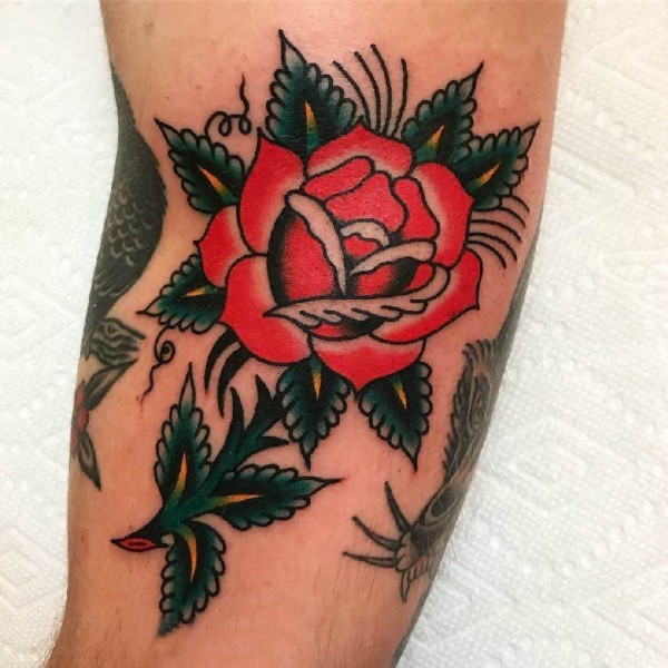 玫瑰纹身图 男生手臂上彩色的玫瑰纹身图片
