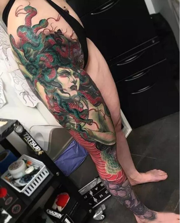 传统花腿纹身--18张传统风格的大花腿纹身图案作品