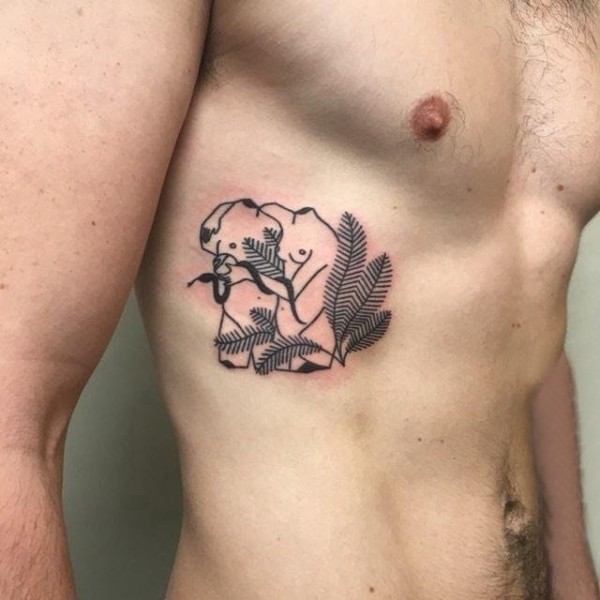 纹身侧腰男 男生侧腰上石头和植物纹身图片