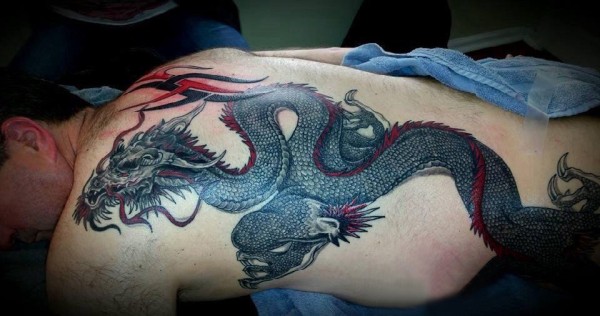 飞龙纹身图 男生后背上彩色的飞龙纹身图片