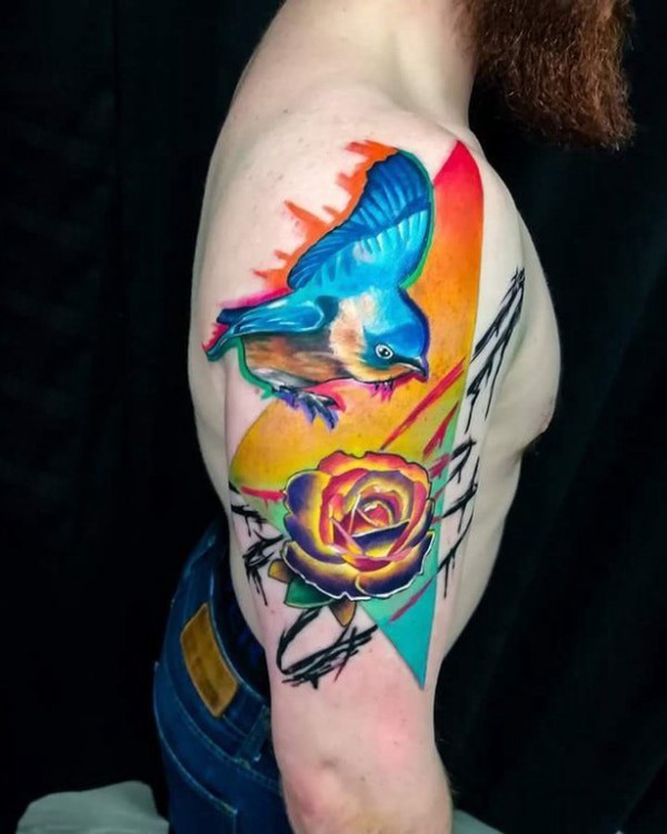 几何和花纹身图案 男生大臂上几何和花朵纹身图片