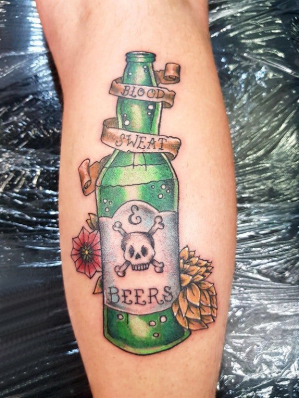 骷髅小腿纹身 女生小腿上彩色的骷髅纹身图片