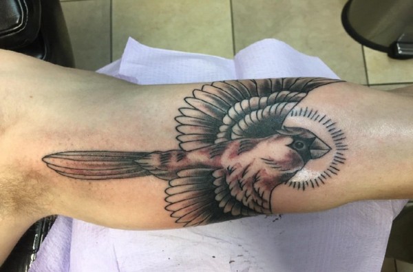 纹身鸟 男生大臂上黑灰的鸟纹身图片