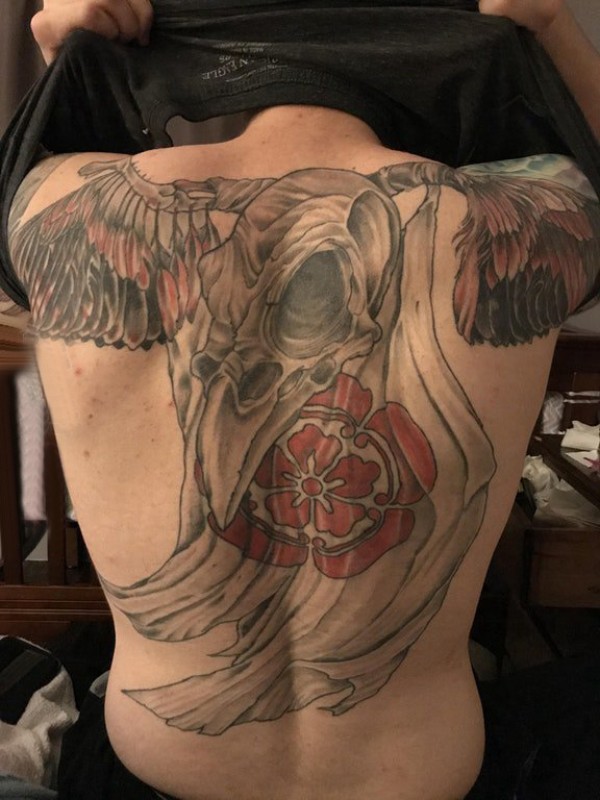 满背动物纹身 男生满背彩色的动物骨头纹身图片