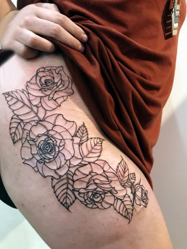 纹身图案花朵 女生大腿上极简的花朵纹身图片