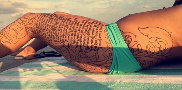 纹身英文字体 女生腿部黑色的英文字体纹身图片
