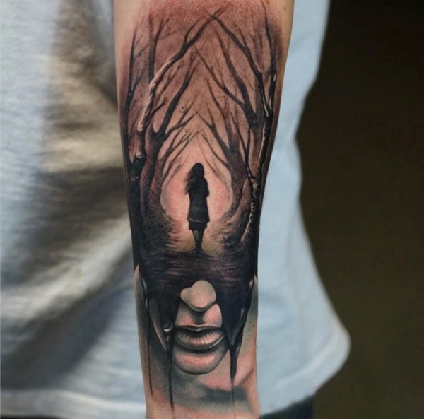纹身小臂 男生手臂上黑灰的人物纹身图片