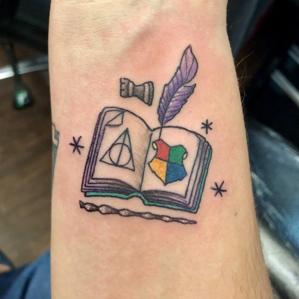纹身书籍 男生手臂上羽毛笔和书籍纹身图片