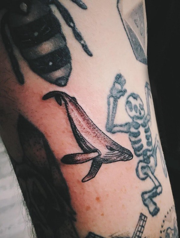 鲸鱼纹身 男生手臂上黑色的鲸鱼纹身图片