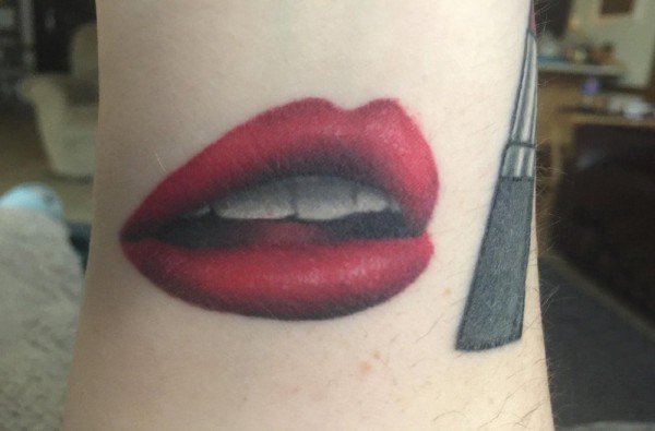 嘴唇纹身 女生手臂上彩色的嘴唇纹身图片