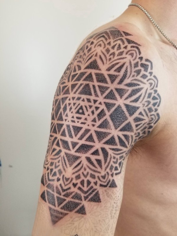 3d几何纹身图案 男生大臂上黑色的几何梵花纹身图片