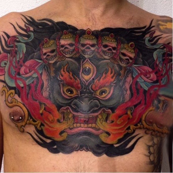 妖魔鬼怪纹身 男生胸前恐怖的妖魔鬼怪纹身图片