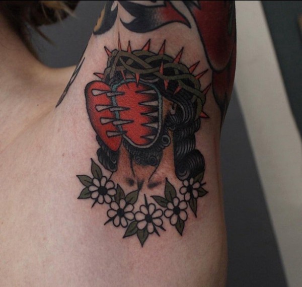腋下纹身图案 女生腋下花朵和恐怖人物纹身图片