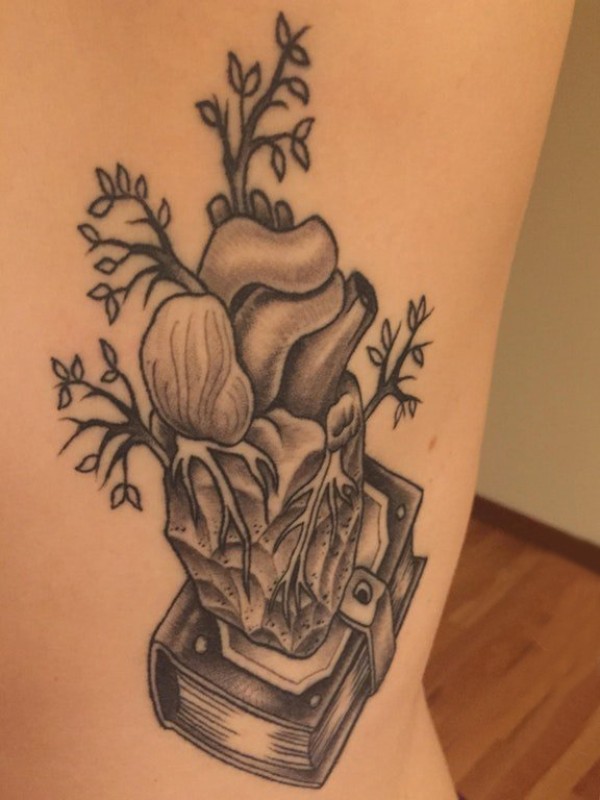 心脏纹身图案 男生侧腰上心脏和植物纹身图片