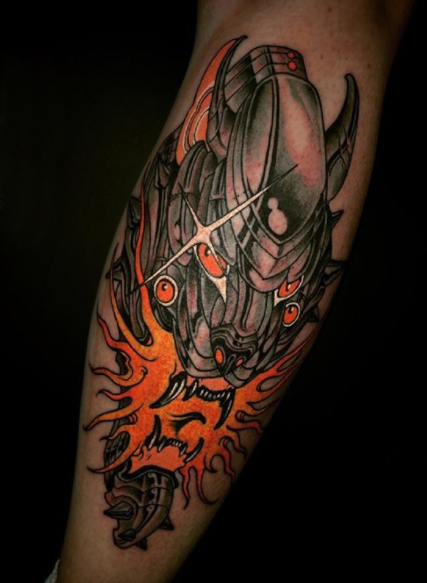 小腿对称纹身 男生小腿上彩色的神兽纹身图片