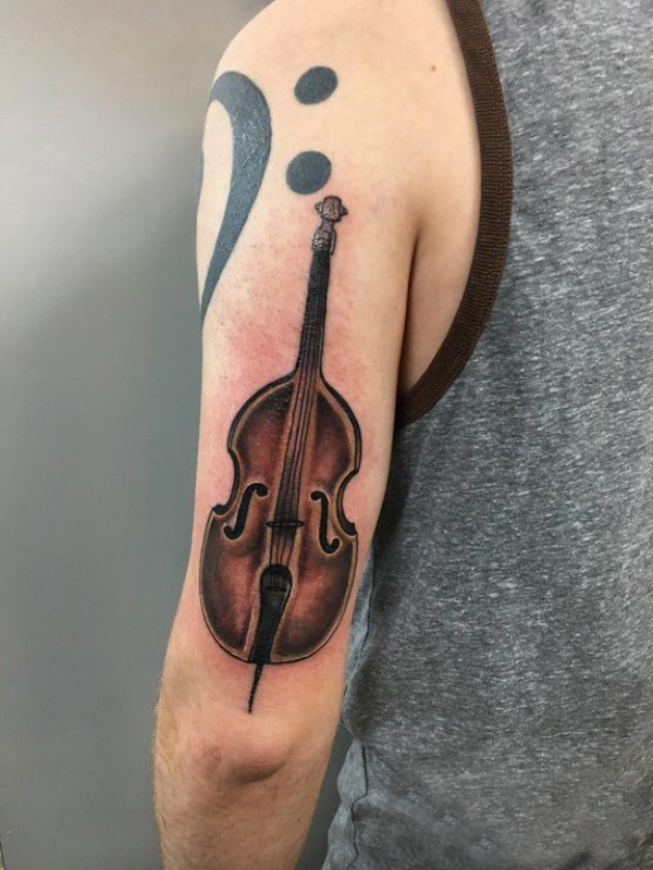 小提琴纹身图案 男生手臂上彩绘的小提琴纹身图片